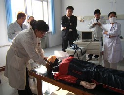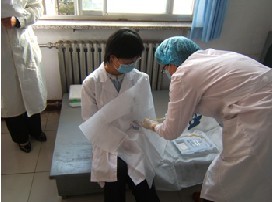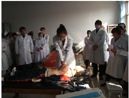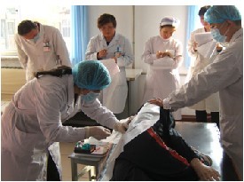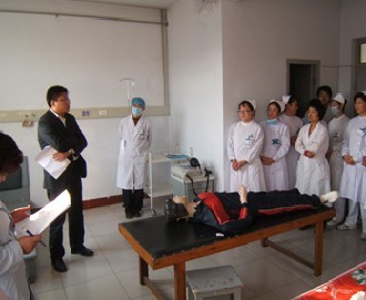 “喂! 喂!您怎么了?”“病人呼吸心跳停止,需要马上抢救!”一位医务人员迅速检查“病人”意识,开始清理呼吸道、准备紧急进行心肺复苏……随着这名医务人员紧张而规范的为“模拟人”实施心肺复苏急救,拉开了我院医护岗位练兵活动的序幕。