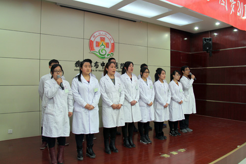 宣传科职工表演《张老汉赞中医院》
