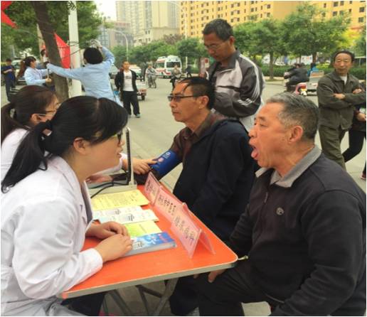 4月26日,市中医医院积极响应市卫生计生委号召,组织医务科、糖尿病科、急诊科业务骨干在市休闲广场开展了以“健康中国,职业健康先行”为主题的大型宣传义诊活动。