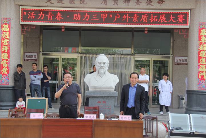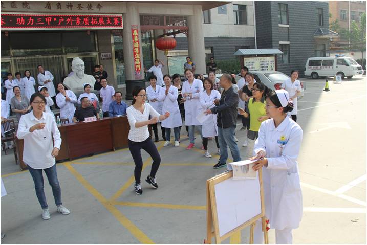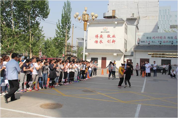 为进一步增进医院青年团员的交流与合作,培养年轻人积极地心态,增强自信心和协作意识,帮助青年职工释放工作和生活中的压力,激发广大团员青年在三级医院的建设中做出新贡献。4月29日,市中医医院团支部在医院前广场组织举办了“活力青春•助力三甲”户外素质拓展活动。市中医医院田建军院长,史志刚书记,工会主席、苗书虎副院长,郭洋副院长应邀参加了本次活动。得到了办公室、行政科、医务科、宣传科、制剂室等兄弟科室的大力支持,全院130余名青年职工及社区群众参加了此次活动。
