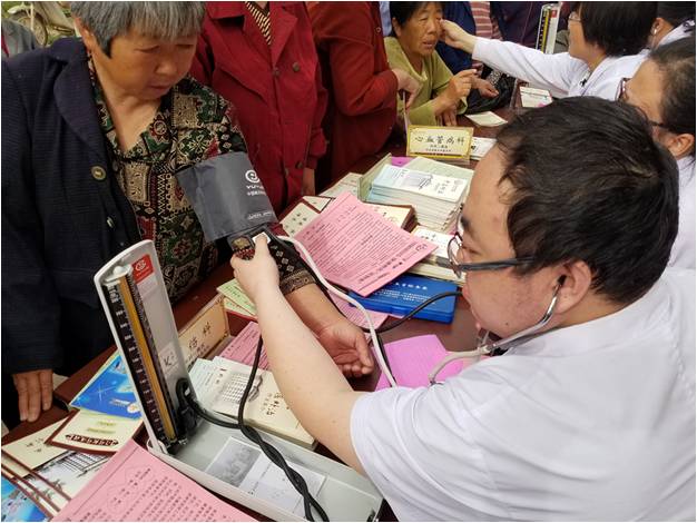 5月6日,衡水市中医医院“五进”工程义诊二队(老百姓队)来到医院心血管病科主任、衡水市首届名中医李萍家属的家乡武邑县紫塔乡前律寨村,免费开诊把脉、健康检查,宣教中医药知识,为乡亲们送去中医药健康。