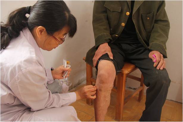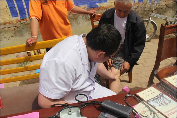 清晨,义诊二队心血管病科、肿瘤科、骨伤科、针灸理疗二科、妇科、中医治未病科11名医护人员赶赴武邑县紫塔乡前律寨村。当地许多乡亲们一早就等候义诊队到来,各位中医专家们还没坐稳,便被乡亲们团团围住。医护人员迅速各司其职,马上测血压、血糖、B超、心电图、耳道窥镜等检查。针灸理疗二科和中医治未病科的医生运用中医手法推拿、针灸、刺血等疗法,当场为老年人的颈椎病、腰椎病、关节疼痛、肢体麻木等顽疾,效果立竿见影,当地群众无不拍手称赞。期间,一名77岁高龄多年瘫痪的脑梗死患者,其家属找到义诊队,非常希望心血管病科专家到家中诊治。随即,李萍主任携带检查设备到患者家中诊治。为患者认真检查,向其家属详细交代了治疗方案,以及日常护理注意事项,让患者家属十分感动,称赞义诊队真是服务到家!