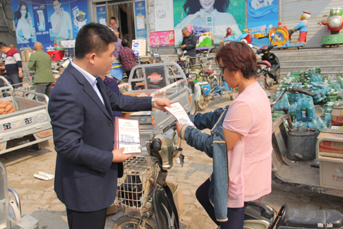 宣传科职工向过往百姓发放宣教资料,宣讲中医药知识