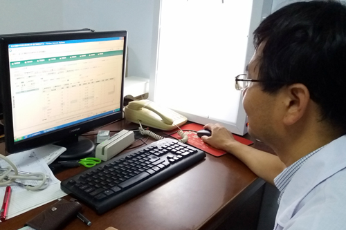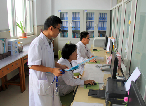 10月3日下午下班后,王玉栋主任逐一核对全天的处方。今天门诊共30人次。收治住院3名患者,两名是慢阻肺,一名是肺癌。