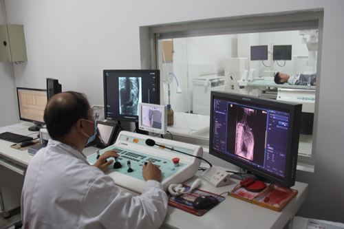 放射科张文斌副主任正在为一名儿童做胃部造影,操作熟练麻利。“我必须又快又准确,不能让孩子不舒服”,他说。