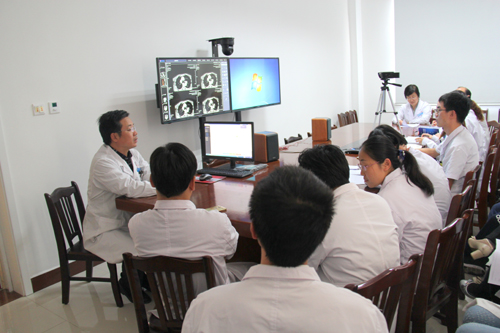 远程教学查房首先由广西省玉林市中医医院脑病科医生汇报查房病例情况,李教授在听完病例汇报后对患者情况及诊疗过程进行了细致询问,而后对此病例的要点进行了总结,并强调了病例汇报要简明扼要,抓住重点。结合本病例的要点及辅助检查结果对可能的疾病一一排除,并对排除原因进行了说明。最后,针对此次查房病例李教授提出了自己的诊断和治疗意见。远程查房结束后,李教授耐心回答了参加远程查房的医院提出的问题,整个过程展现了李教授干练扼要的工作作风和清晰缜密的临床思维,对观摩医院起到很强的教学示范作用。