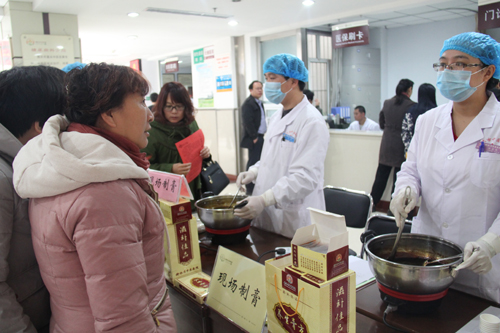 市中医医院连续五年举办“膏方养生文化节”,旨在推进“南膏北进”,不断满足北方“湖城”百姓的治病防病和中医养生保健需求。医院中医药专家通过多年的辩证施治,按照中医“冬藏”理论,选用道地中药材精制了集防病治病、养生保健于一体的“舒悦安神膏、气血复元膏、通经下乳膏、益母定坤膏、健脑益智膏、温中健运膏、活力养心膏、美容祛斑膏、酒神花膏、三花利咽膏”系列精品膏方。并坚持“一人一方”,针对慢性疾病、亚健康状态、女性调理、青少年益智、术后及产后恢复等,发挥温顺调补、强身健体的作用,效果显著,深受人们的欢迎和热捧。