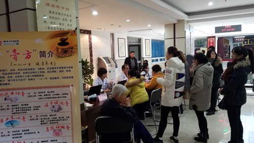 12日清晨,医院健身队用祖国传统“八段锦”养生操拉开了膏方节序幕。一股突来的寒流也未阻挡人们的膏方养生热情,人们早早就赶到医院,将省市级名中医与膏方专家们团团围住,场面依然火爆。省级名中医马艳东,市级名中医、脾胃病科主任刘银鸿,市级名中医、心血管病科主任李萍,治未病中心主任孙国锋,针灸理疗一科主任李秀荣,针灸理疗二科主任贾卫华,肝胆病科主任刘梅举,老年病科主任王丽荣,肺病科主任中医师高福顺等中医专家,为人们“望闻问切”、辨证施治,提供“一人一膏”服务。医院还现场演示膏方传统制作工艺和流程,并供人们免费品尝,进一步普及膏方养生和中医药知识。膏方节现场场面“爆棚”,到处弥漫着浓郁的中医药文化氛围。