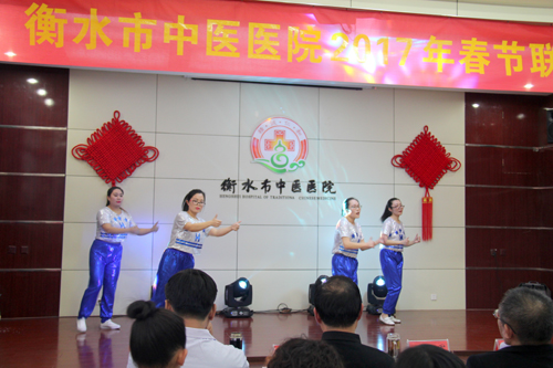 2017年春节联欢会由医院职工自编自导,共分为“岁月篇、青春篇、未来篇”三个篇章。红红的中国结、喜庆的灯笼、缤纷的射灯、五彩的泡泡……联欢会在舞蹈《国家》中拉开帷幕,身着华丽服装的医院医护人员在舞台中央翩翩起舞,把观众带入吉祥喜庆的春节氛围中。《因为是医生》、《下一站天后》、《回家的路》、《中国人》等歌曲节目展现了中医院人独特的靓丽风采;《夜空中最亮的星》、《给我几秒钟》、《爵士舞》、《雨中花》等手语、舞蹈节目体现出中医院职工青春蓬勃的朝气;诗朗诵《中药赋》表现了祖国中药的深厚底蕴,展现了医院浓浓的中医药情怀;《我要去西藏》、《小马放飞》、《七彩梦、中国梦》等医院职工子女表演的节目,活灵活现、生动可爱,凸显了中医院人“一家亲”的浓浓深情……整场联欢会精彩纷呈,掌声、喝彩声、笑声不断,让人仿佛置身温馨与喜悦的海洋。