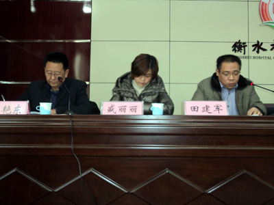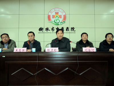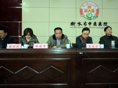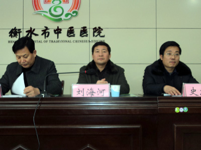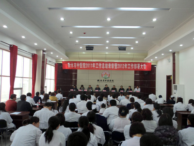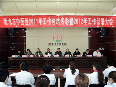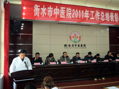 2012年1月13日下午,衡水市中医院在新综合楼11层“百合厅”成功召开了“衡水市中医院2011年工作总结表彰暨2012年工作部署大会”。会议由医院党支部书记、副院长马艳东主持,会议邀请到了市卫生局党组书记、局长郝彦斌,副局长刘海河,副调研员、办公室主任王志强,疾控办副主任倪啸尘,应急办副主任盛丽丽,院长田建军、副院长史志刚、副院长苗书虎出席了会议并讲话,医院全体干部职工参加了会议。