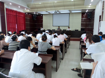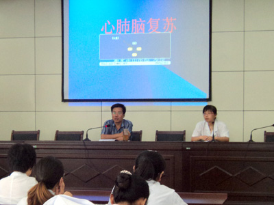 医院以《衡水市卫生局关于开展全市卫生应急大练兵活动的通知》为指导,结合实际制定了医院《卫生应急大练兵活动方案》。培训中,医务科路志敏科长介绍了卫生应急的基本知识,内科李萍主任、外科刘荣顺主任分别结合病例对“2010版心肺脑复苏基本操作”及“外伤救治的基本知识”进行了讲解。