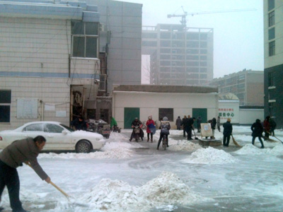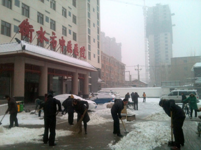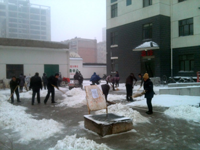 12月13日,我市迎来了今年入冬以来的首场大雪。14日清晨,湖城上下银装素裹,但积雪却给人们出行带来不便。为方便市民来我院就诊,今晨不到7点,田建军院长就带领院领导班子和全员职工顶着寒风,挥锹清扫院内积雪,开展了一场热情洋溢的大扫雪行动。