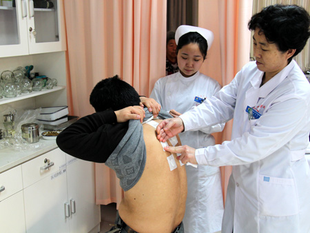 冬至(12月22日)上午,医院推拿科、针灸理疗一科、针灸理疗二科、肺病科、脾胃病科、糖尿病科就排满了预约进行“三九贴”的患者。“去年我就贴了‘三九贴’,对我多年的腰椎间盘突出效果非常好,今年我还得继续贴。”,“今年夏天没有赶上中医院的“三伏贴”,冬天可不能再错过了‘三九贴’,治疗慢性病,我还是相信中医!”,很多前来贴敷的市民都发出了这样的感慨。