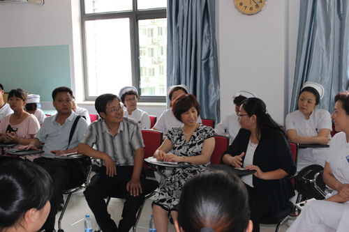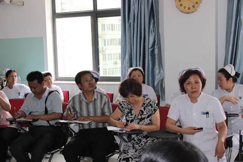 我院一行人员受到了东方医院郭蓉娟副院长、护理部刘香弟主任及护理部全体人员的热情接待。刘香第主任首先介绍了东方医院中医护理工作概况和优质护理亮点,并安排各科室护士长带领我们相关科室人员进行点对点现场参观学习交流。
