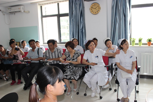 我院人员参观了优质护理示范病房,护理部主任、护士长及护理骨干分别到心血管病、呼吸、脾胃、骨科、肿瘤、妇产、急诊及手术室等科室进行了实地学习。对中医护理方案的实施、辩证施护、优质护理服务、中医特色技术应用、辨证施膳、健康指导的开展、护理质量控制,以及医院等级评审等相关问题向东方医院各位专家进行请教学习。东方医院刘香第主任和各位护士长均进行了耐心的讲解和指导。