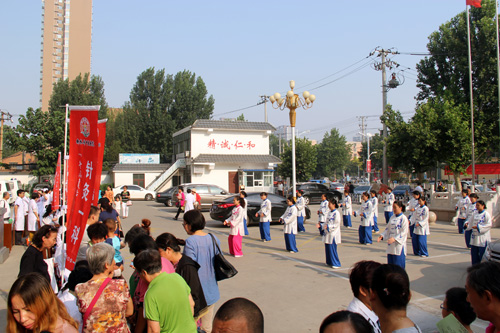 由于往年贴敷的患者较多,各科室人满为患,今年医院周密安排,将贴敷处转移至前院广场,为患者提供咨询、挂号、缴费、贴敷一条龙服务。并在开展“三伏贴”近30年的基础上,创新细化中医药特色疗法,由针灸一科、针灸二科、推拿科、肺病科、脾胃病科、妇科、儿科、糖尿病科、老年病科推出“三伏贴”九大系列疗法,分别设立了贴敷处。医院还特意安排了中医养生保健操“八段锦”表演,让患者在就诊闲隙观看学习。并针对当天的高温,贴心准备了荷叶茶、杞菊冰茶供人们免费饮用。