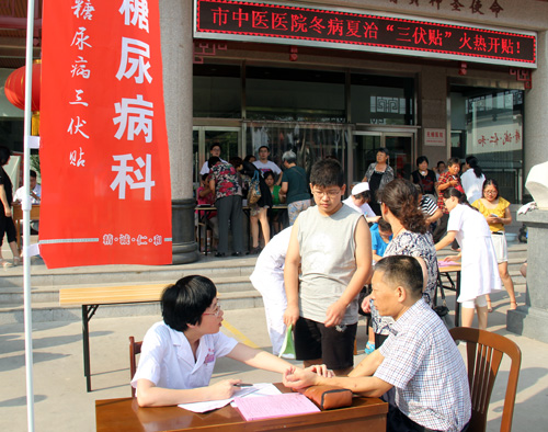 昨天是“入伏”第一天,市中医医院在“三伏天”这一冬病夏治的最好时机,举办了“三伏贴”大型贴敷活动。早晨7点之前,医院广场等候贴敷的患者就排起了长长的队伍。虽然当天我市迎来入夏以来最高温,但仍难以抵挡人们争贴“头伏贴”的热情。