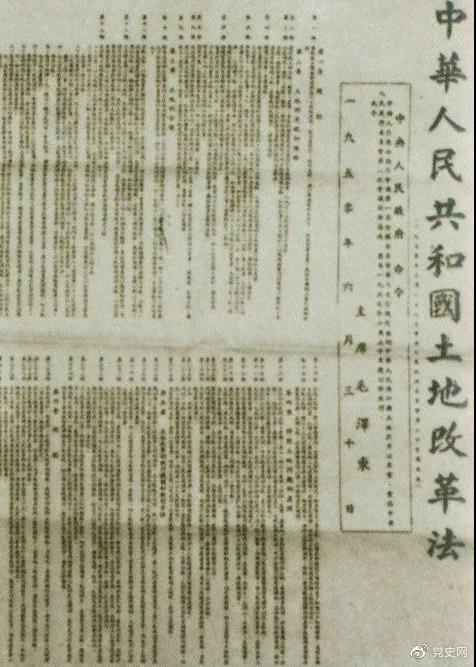 1950年6月30日,中央人民政府公布施行《中华人民共和国土地改革法》。