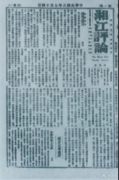 1919年7月14日出版的《湘江评论》创刊号。