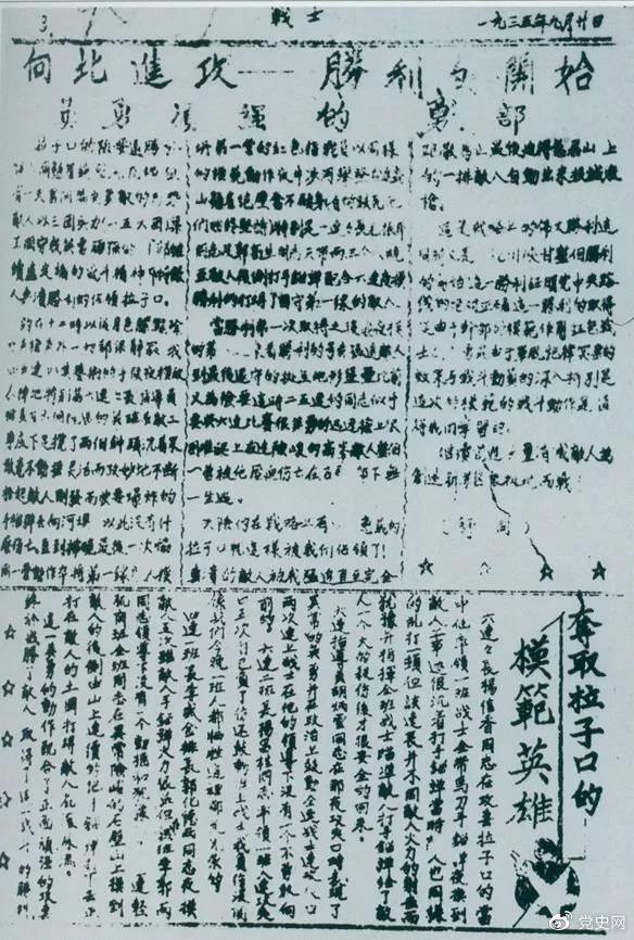 1935年9月20日,红一军团《战士报》刊登的红军攻破腊子口的消息。