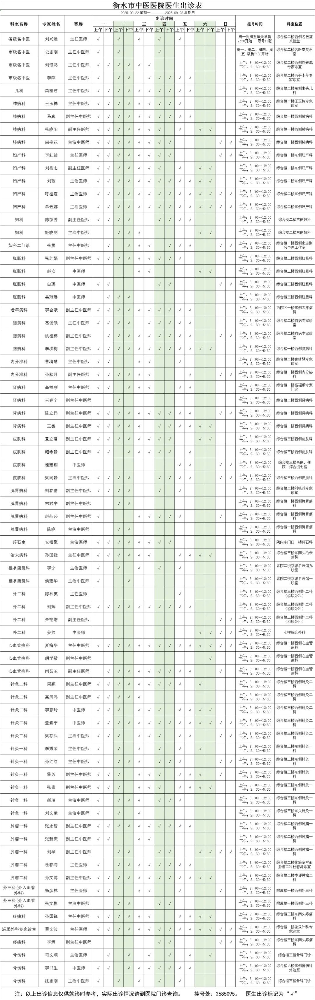 【出诊我先知】衡水市中医医院一周出诊表(2025.9.22--9.28)